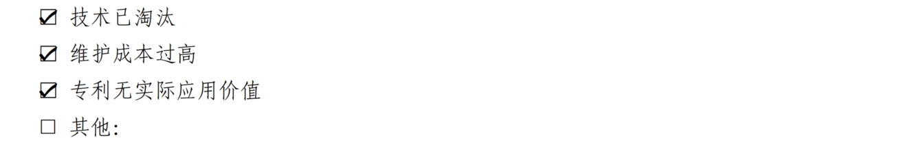 本單位決定自即日起放棄對上述專利的維護(包括但不限于停止繳納年費),具體原因如下: