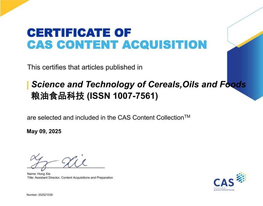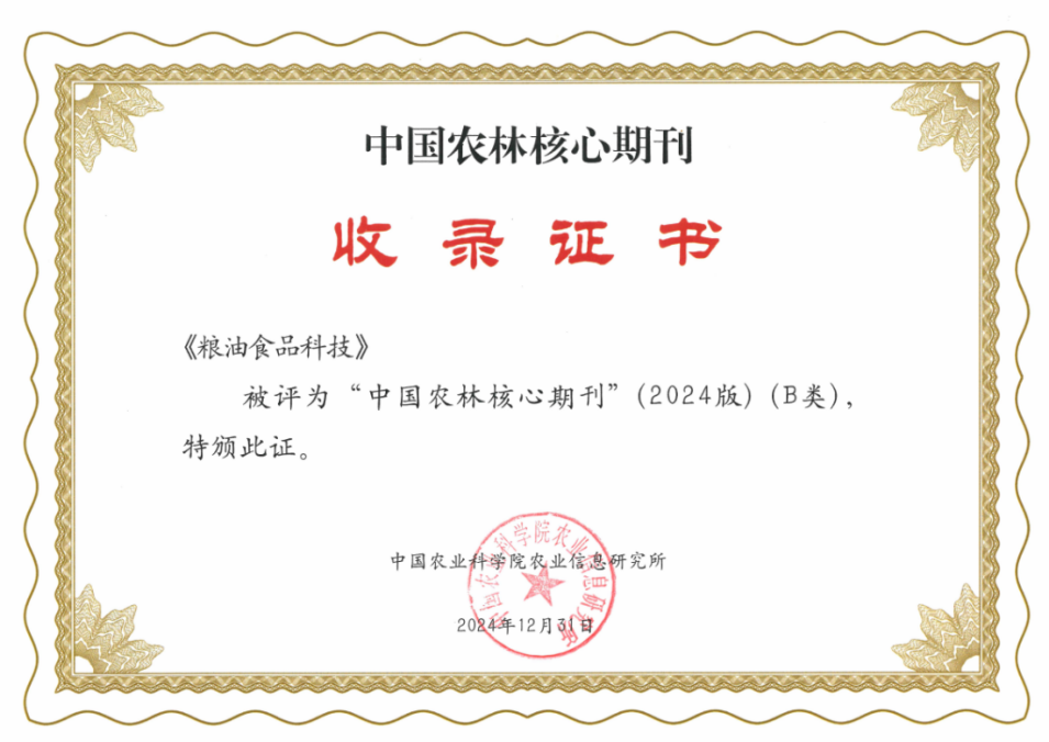 近期,國家糧食和物資儲備局科學(xué)研究院主辦的《糧油食品科技》被多家國內(nèi)外數(shù)據(jù)庫收錄,學(xué)術(shù)傳播力和影響力進(jìn)一步提升。
